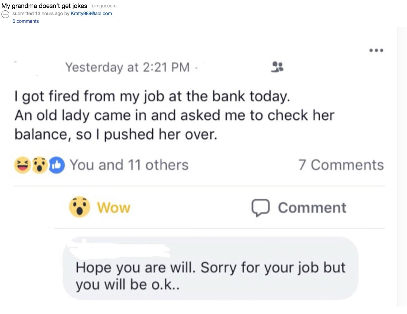 Reddit is a treasure chest overflowing with internet gems. A great example of this the subreddit r/oldpeoplefacebook, which makes it clear that our more senior citizens have a little more difficulty with the use of Facebook than the younger generations…