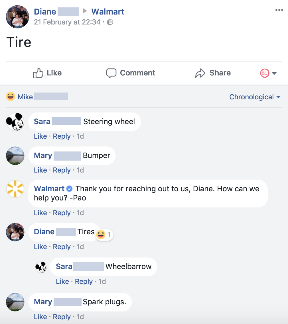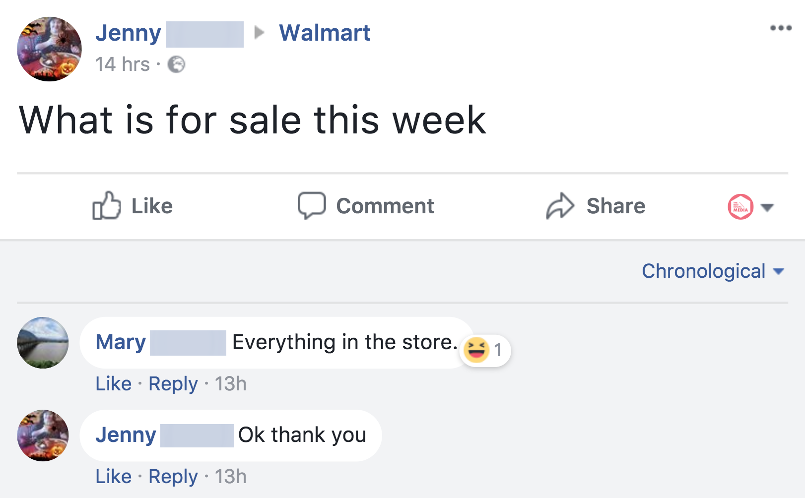 1. Hot tip: if you’re new to Facebook, just ask the official Walmart page for help.