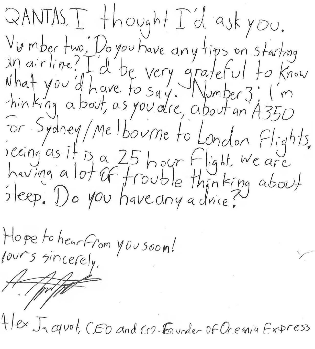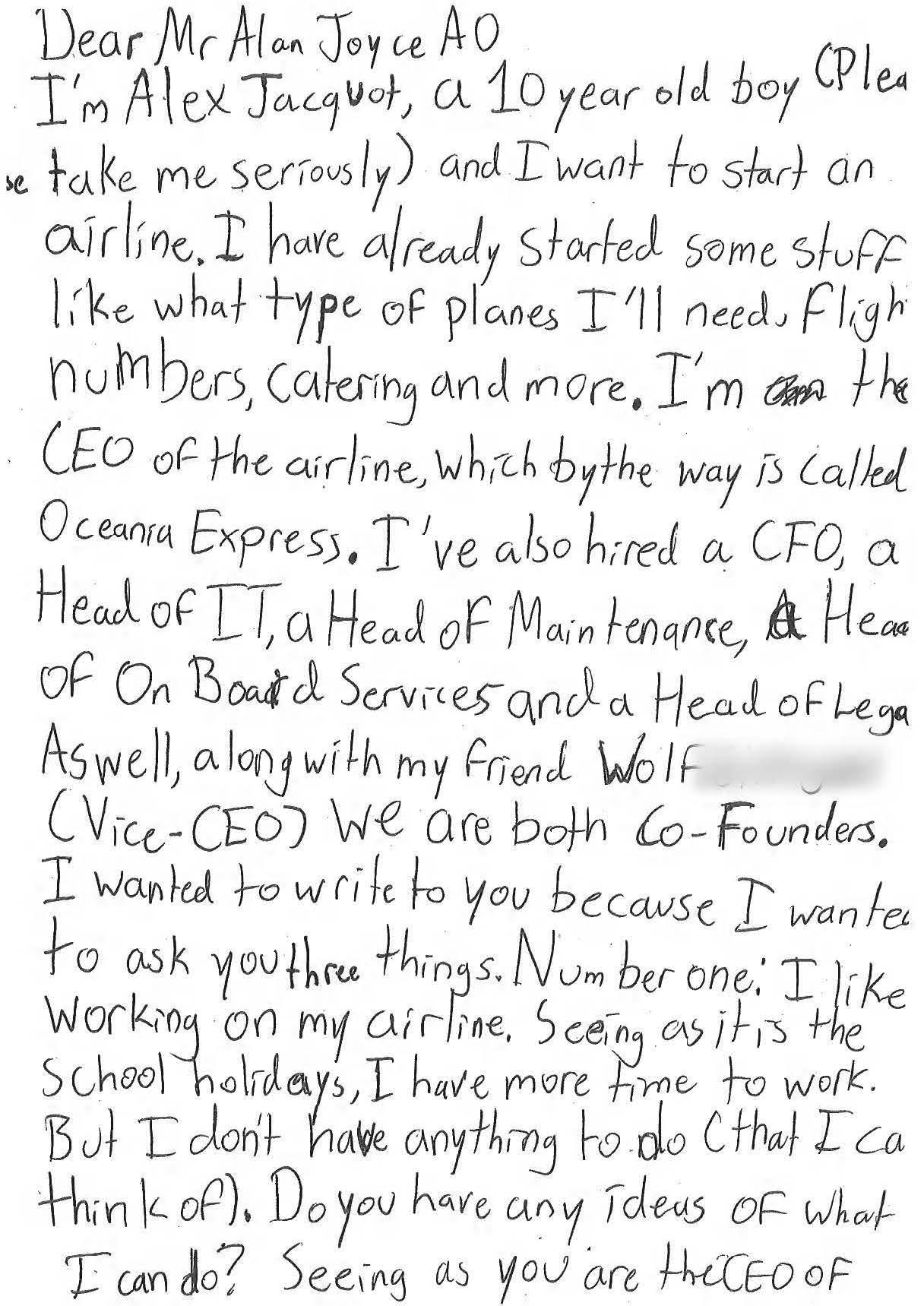 What did you want to be when you were a little kid? The 10-year-old Alex wants to be the CEO of his very own airline. And how do you start your career? By asking one of the biggest airlines in the world of course.