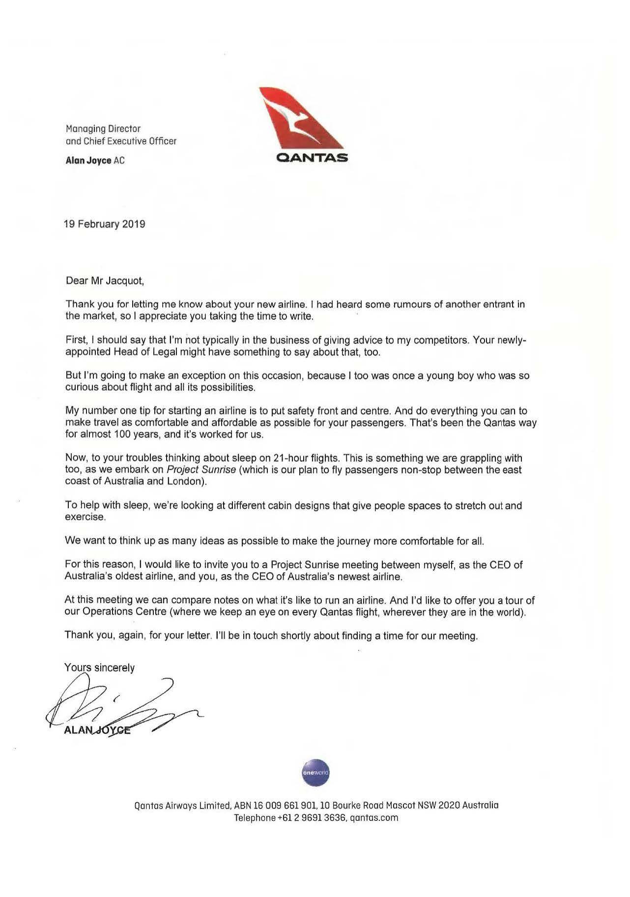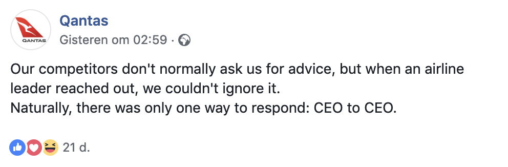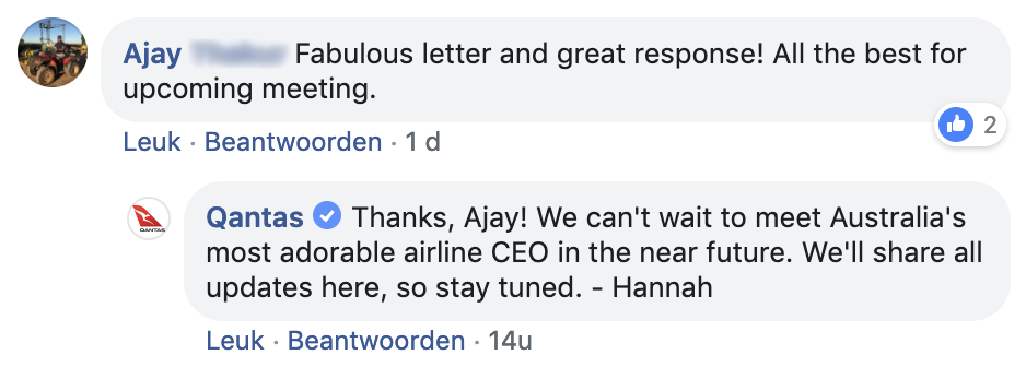 3. Qantas appreciates the letter a lot en posted it on Facebook..