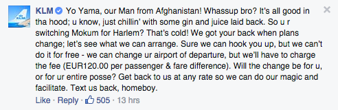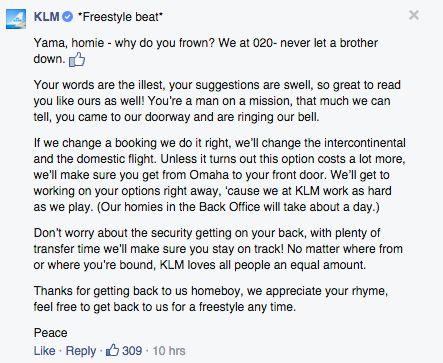 2. KLM responds like a champ (tip: read it out loud!).