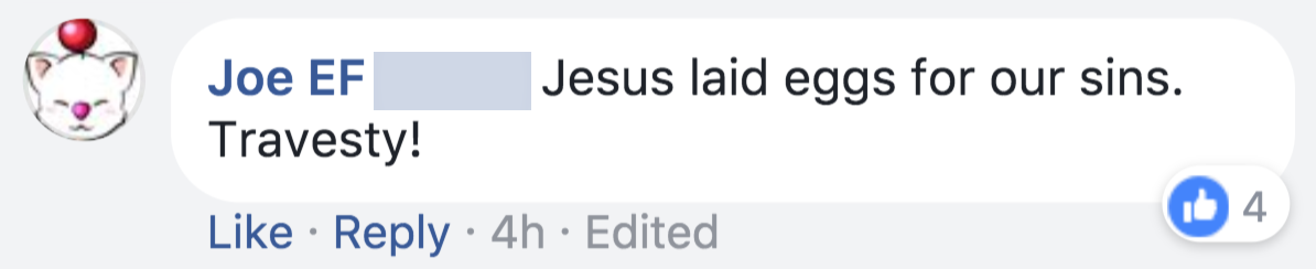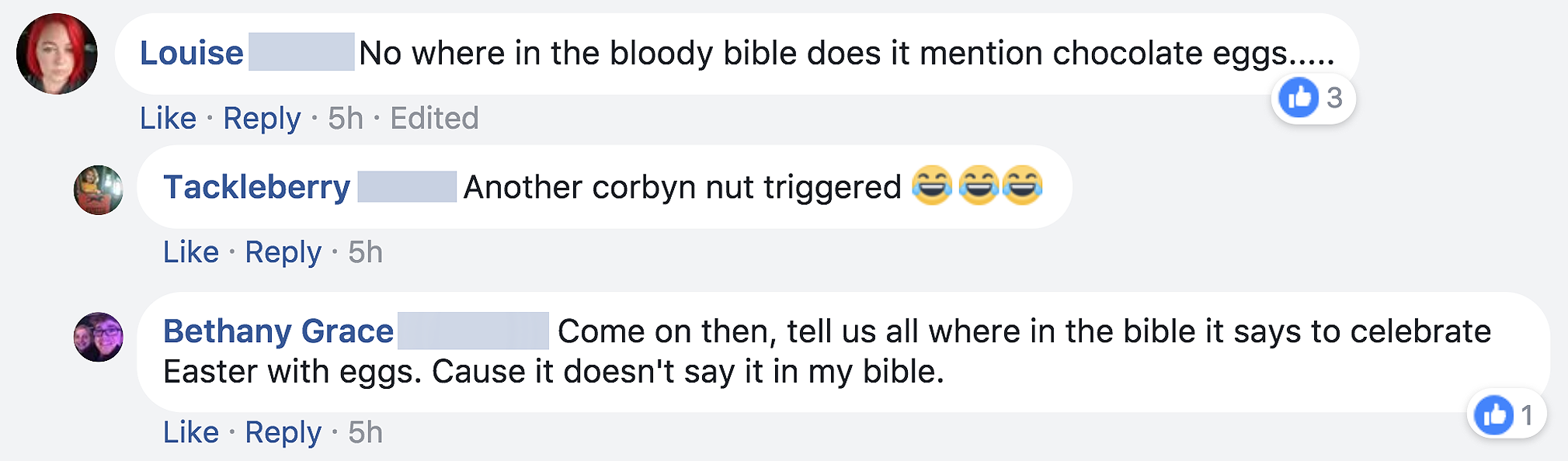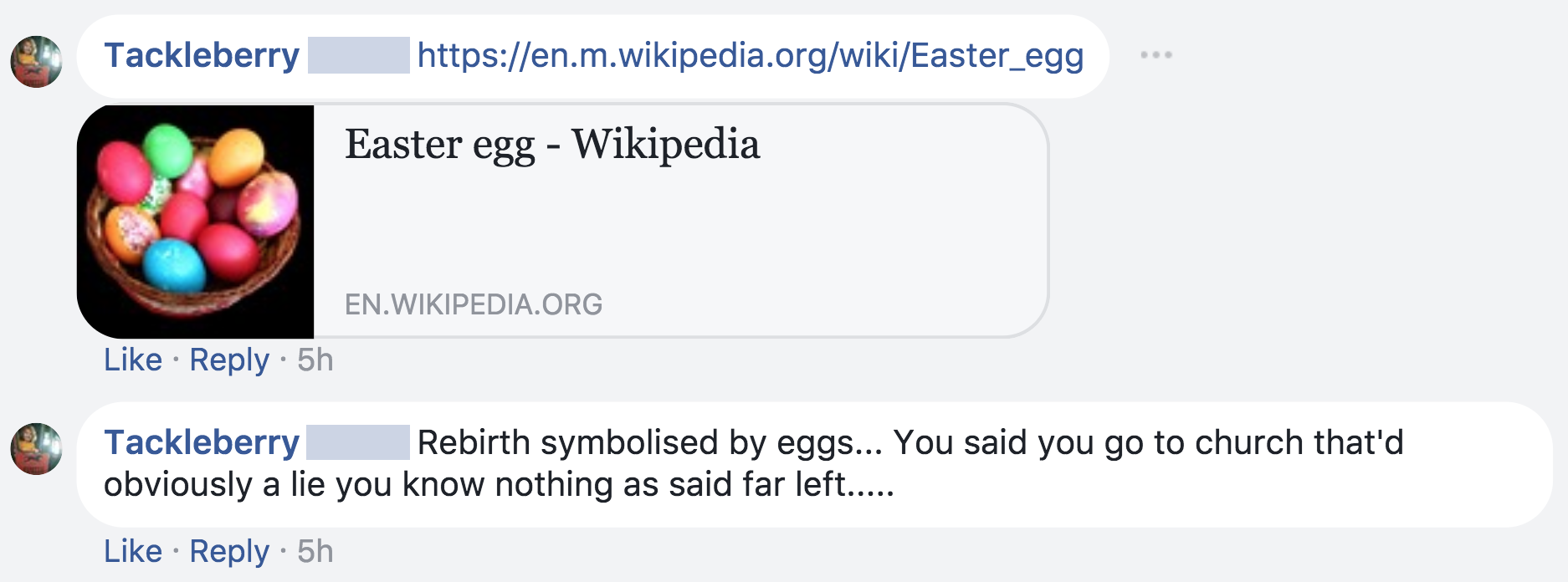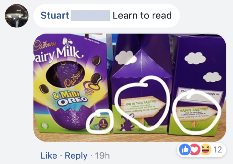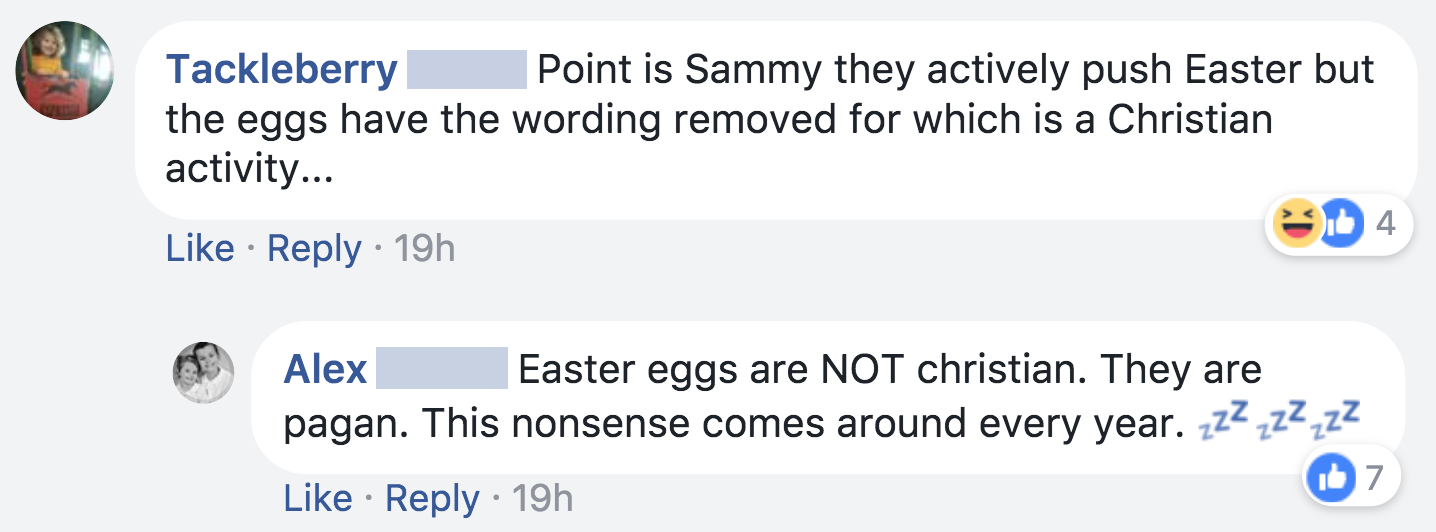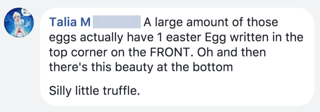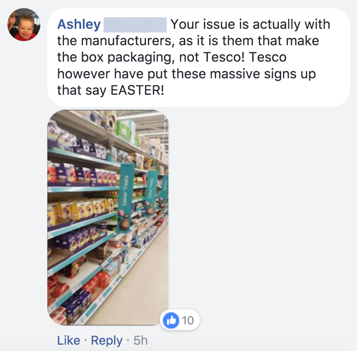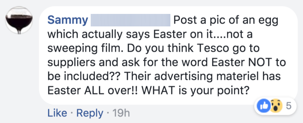 1. Tackleberry posted a video on Tesco’s wall that claims none of the Easter eggs available there feature the word “Easter on it. You can watch it here.