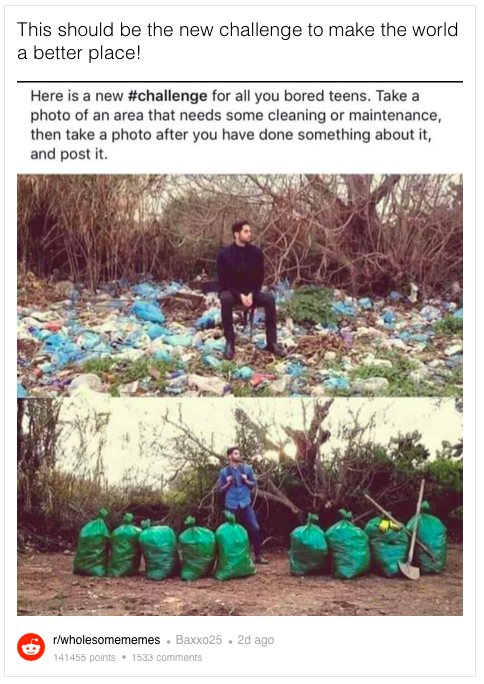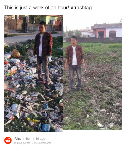 The #Trashtag became a worldwide phenomenon in just a few days thanks to this post on reddit, and started trending all over the internet. The idea of the challenge behind the hashtag is to post before-and-after photos of an area in nature that desperately needs cleaning, and to motivate others to do the same thing. So next time you see some trash in places it shouldn’t be, don’t hesitate to do something about it; these people didn’t.