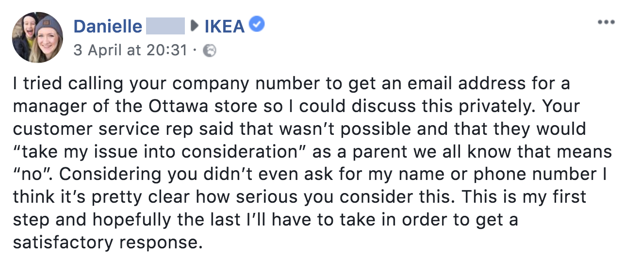 1. Danielle from Ottawa needs to get something off her chest on IKEA Canada’s Facebook page.