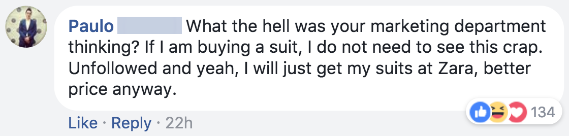 4. A bunch of people unliked and/or unfollowed Suitsupply because of the campaign.