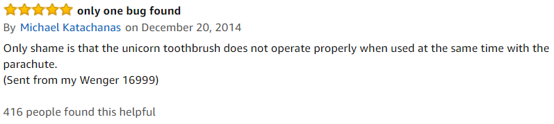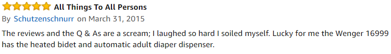 We all love tools which are good for more than just one job don’t we? The Swiss company Wenger is taking it to another level. The 16999 officially has 141 functions and even more user reviews on Amazon. These reviews seem to be never getting old, as they keep going viral periodically. And we understand why: some of them are hilarious. We tweezed, cut and ‘filed’ some of the best.
