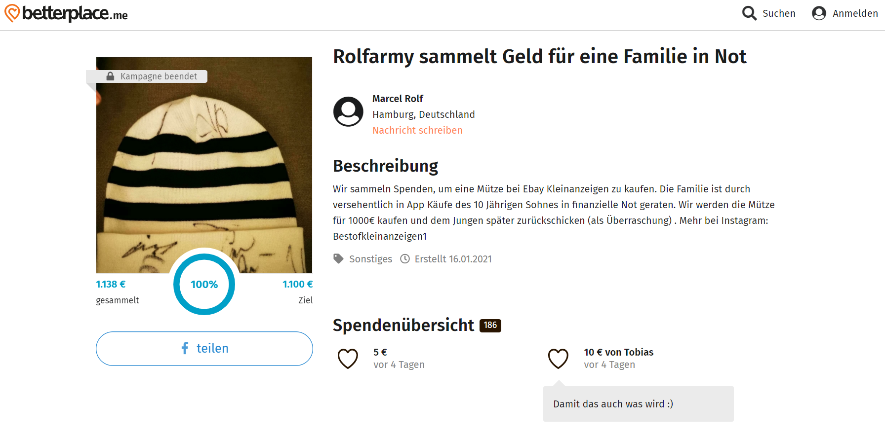 4. Also wurde schnell eine Kampagne aufgesetzt. Nach gerade mal 15 Minuten waren die 1.000 Euro bereits gesammelt. Und Rolf meldet sich bei der Familie. „Die dachten zuerst, ich nehme sie auf den Arm“, beschreibt Rolf die Situation. „Erst als die 1000 Euro per Paypal da waren, haben sie anscheinend geglaubt, dass das echt ist.“