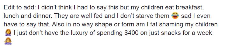 Jen hat noch ergänzt, dass das natürlich nicht alles ist, was ihre Kinder am Tag zu essen bekommen. Mit den Körben ging es ihr nur um die Snacks zwischen den Mahlzeiten.