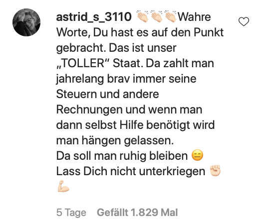 Nachdem das Video viral ging und auch außerhalb der sozialen Netzwerke für Gesprächsstoff sorgte, versprach Kanzleramtschef Helge Braun, dass die Hilfen schnellstmöglich ausgezahlt werden. Warum braucht es dafür aber immer erst derartige Appelle? Online zeigten sich die User enttäuscht von den Entscheidungsträgern und wünschten Bianka Bergler viel Kraft.