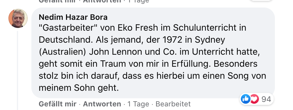 Eko Fresh, Ghettochef, Junge denn es muss sein… huch, kurz in Jugenderinnerungen abgedriftet. Nach inzwischen fast 20-jähriger Karriere kann man Eko getrost zu den Urgesteinen des deutschen Raps zählen – vor allem dessen, der migrantisch geprägt ist. Bereits im Jahr 2012 brachte der gebürtige Kölner und Sohn türkischstämmiger Eltern den Song „Gastarbeiter“ heraus, der sich mit den Erfahrungen von eben diesen auseinander setzt. Ein wichtiges Stück deutscher Kultur…