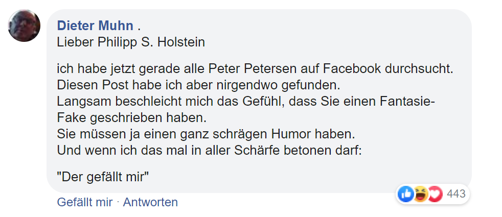 8. Aber halt! Gibt es etwa gar keinen Peter Petersen? Völlig korrekt!