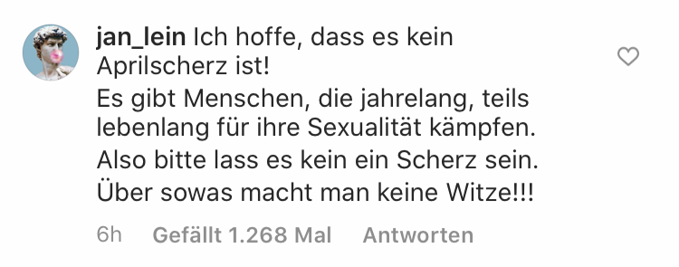 In seiner Story spricht er davon „wie schwer ihm das Outing fällt“. Tja lieber Basti, dein Aprilscherz ist für andere Realität , wirklich lustig was du dir Schelm da heute ausgedacht hast.