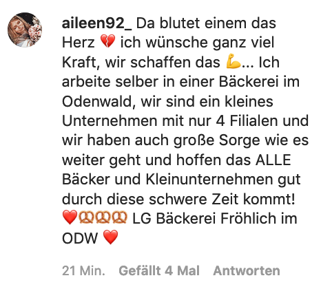 3. Das Angebot, allen Menschen, die im Gesundheitssystem arbeiten, Bäckereiwaren umsonst zur Verfügung zu stellen, tut sein übriges. Wir hoffen, dass dieses Video die mehr als ernste Lage vieler Unternehmen in Europa und der Welt anschaulich hinausträgt. Jeder kann seinen Teil beitragen, um Existenzen in den nächsten Wochen zu retten.