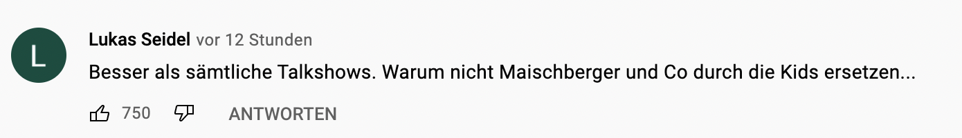 Bereits letzte Woche mussten sich die Kanzleramtsanwärter*innen auf Sat1 gegenüber den härtesten Interviewpartnern beweisen, die es gibt: Kinder. Nun zieht auch Pro7 mit Late Night Berlin nach. Diesmal nicht im Klassenraum, sondern in einem großen Zelt und statt 16 neugierigen Kindern sind es nur zwei. Besser geschlagen hat sich Armin Laschet deswegen aber nicht. Und Olaf Scholz‘ Performance glänzt eigentlich nur im Vergleich zu der von Laschet. Zumindest wenn man den Kommentaren unter den jeweiligen Youtube-Videos Glauben schenken darf.