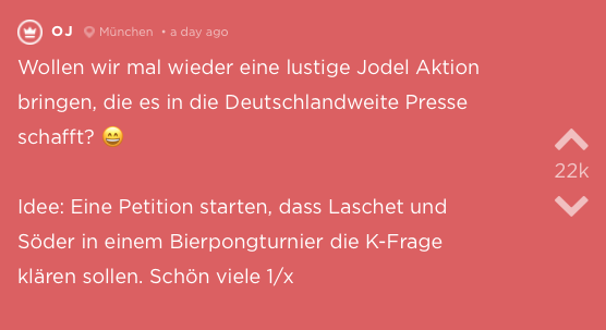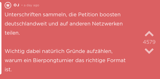Natürlich hätte man die K-Frage eleganter lösen können, zum Beispiel in Form eines Bier-Pong-Turniers – wie ein User auf Jodel vorschlug. Sogar eine Petition wurde dafür ins Leben gerufen.
