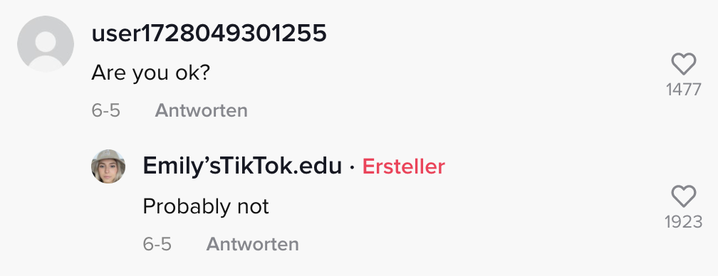 Blonde Haare, ob gefärbt oder natürlich, gelten in Kreisen mit besonders anspruchsvollem Humor gemeinhin als Zeichen für geringe Intelligenz. Als Blondine kann man sich über solche Dummheit suggerierende Witze ärgern oder man macht es wie @emilyzugay und dreht den Spieß einfach um. Sie lädt regelmäßig Videos hoch, in denen sie sich mit alltäglichen Dingen offensichtlich schwertut und genießt dann die empörten Kommentare von Menschen, die offensichtlich auf ihre Satire hereingefallen sind und sich daher peinlicherweise schlauer fühlen als sie.