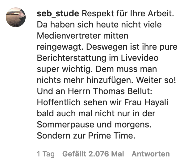 1. Dunja Hayali wagte sich Samstag übrigens mitten rein in die breiige Masse an Demonstranten. Das Material stellte sie ungefiltert auf Instagram. 37 Minuten, inzwischen über 500.000 Clicks. Wer die immer gleichen „Lügenpresse“-Zwischenrufe allerdings nicht mehr hören kann, sollte das Video mit Vorsicht genießen.