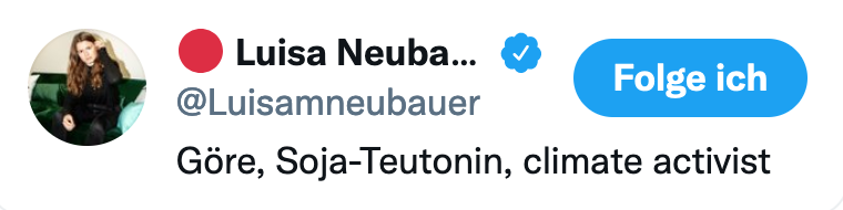 Achja, ganz im Greta Style wurde auch die Twitter Bio von Luisa entsprechend angepasst. Klingt doch super!