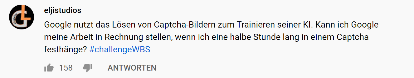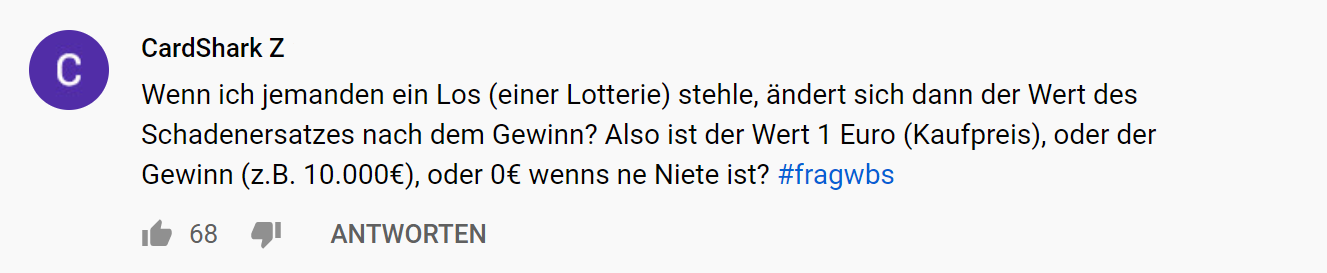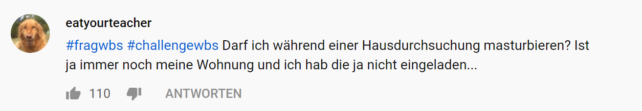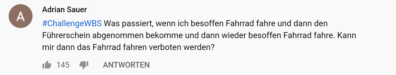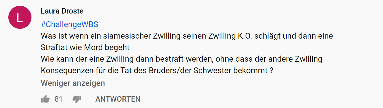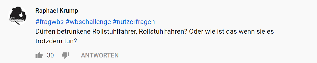 7. Wobei es natürlich nicht alle in ein eigenes Video schaffen. Dennoch macht Herr Solmecke meist einmal die Woche ein besonderes Challenge-WBS-Video, in dem er auf mehrere solche User-Fragen eingeht.