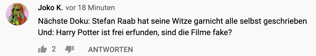 Wo liegt denn eigentlich das Problem ? Es ist doch für einen halbwegs intelligenten Menschen klar dass das eine oder andere gespielt ist. NA UND ? Ich fühlte mich immer gut unterhalten. Und darauf kommt es doch letztendlich an. #JokoundKlaas