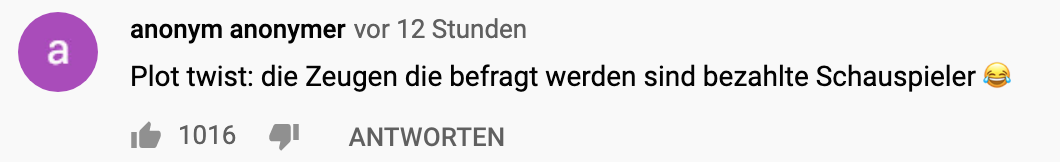 Die Kommentare unter dem Video zeigen die Enttäuschung über die vermeintlich realen Aktionen.