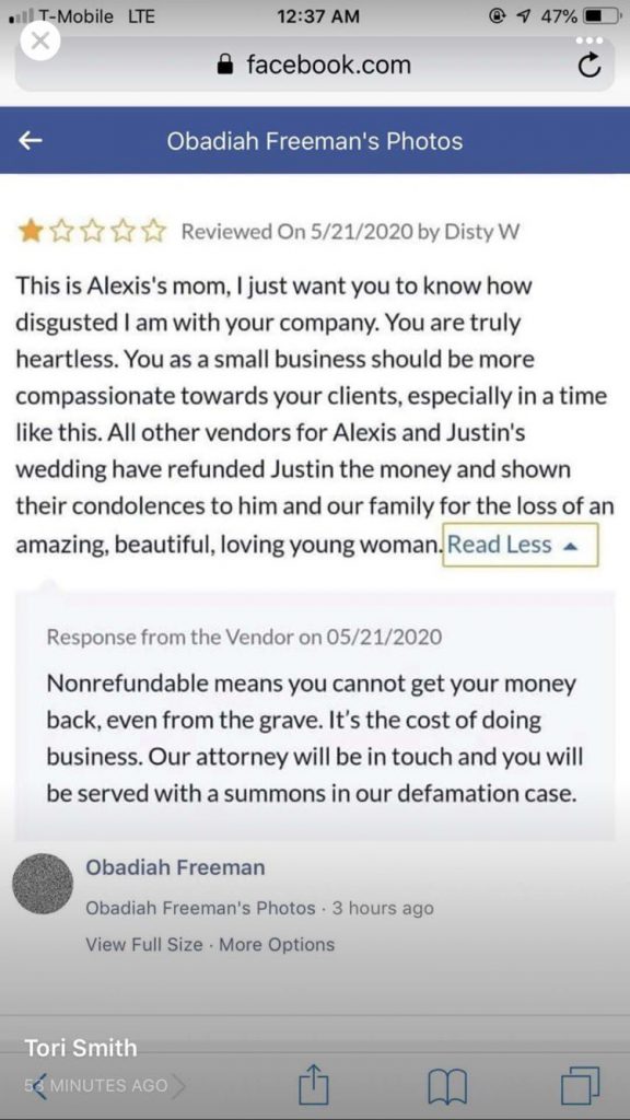 https://twitter.com/Tyler_Macin17/status/1264627454309576710?ref_src=twsrc%5Etfw%7Ctwcamp%5Etweetembed%7Ctwterm%5E1264627454309576710%7Ctwgr%5E&ref_url=https%3A%2F%2Fwww.buzzfeednews.com%2Farticle%2Fskbaer%2Fwedding-videographer-refuses-refund-fiance-death