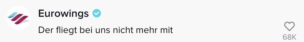 Wie reagieren, wenn du realisierst, dass ein Fremder in deiner direkten Umgebung fremdgeht? Richtig. Du versuchst die oder den Betrogene/n über Social Media zu erreichen und hoffst, dass dein Video viral geht. Die TikTokerin Maxine Reuker hat genau das probiert, als sie eine entsprechende Geschichte im Flugzeug mitgehört hat. Und Eurowings hat für den Community Management Moment der Woche gesorgt.