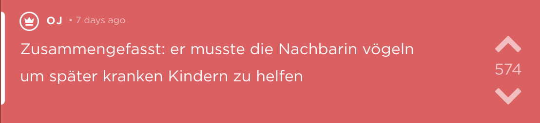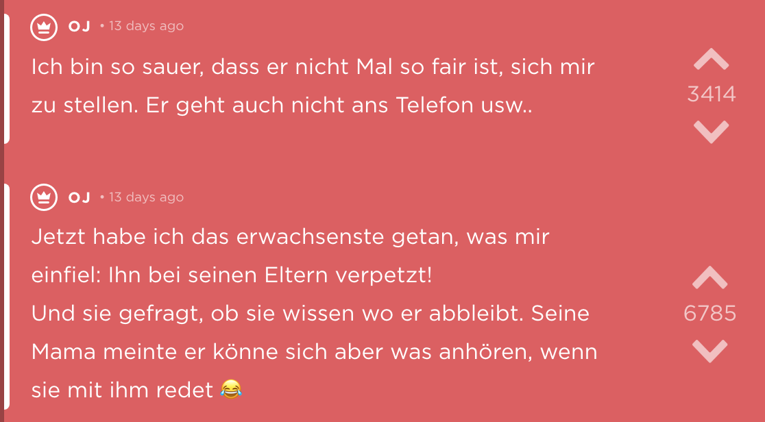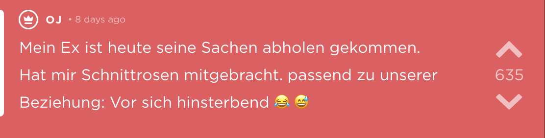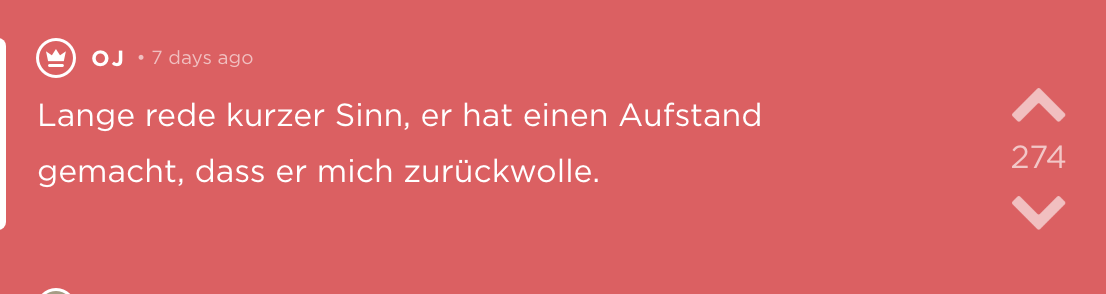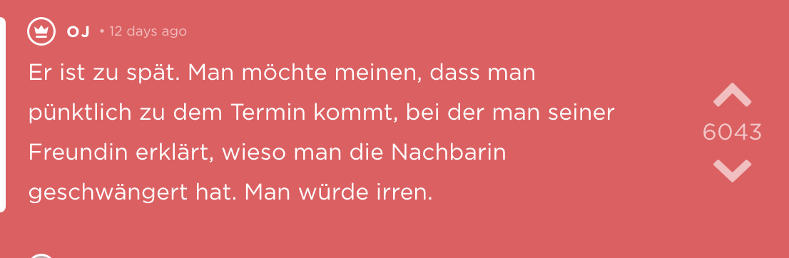 Regret über falsche Lebensentscheidungen auch nochmal an diese Stelle.