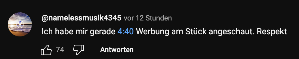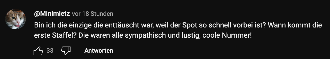 In den Kommentaren finden sich nur lobende Worte zum Clip.