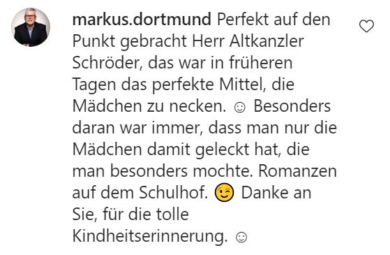 Dort veröffentlichte sie nun ein Video, in dem der Altkanzler beweist, dass er nicht nur Ahnung von Zigarren, Ehen und Haare färben (angeblich) hat, sondern auch von Hagebutten! Und alle Achtung, beeindruckend, was man damit alles anstellen kann!