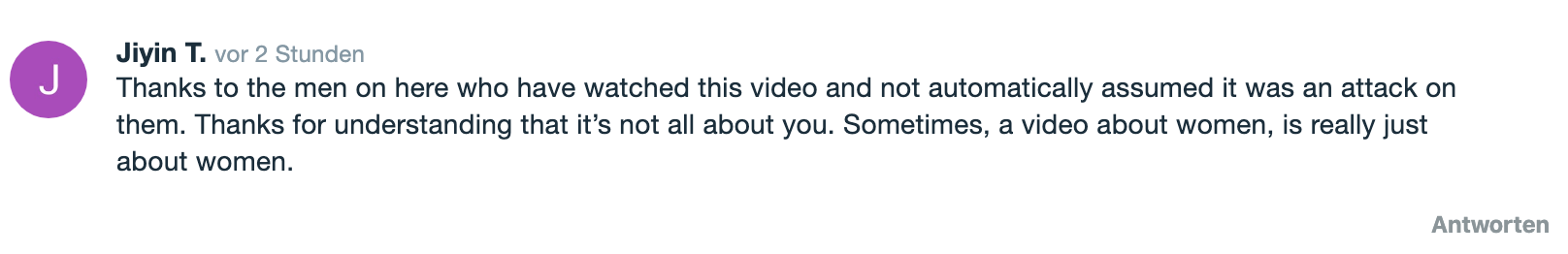Aber auch kritische Kommentare, z.B. zur Tatsache, dass das Video von einem Mann produziert wurde, sind zu finden.