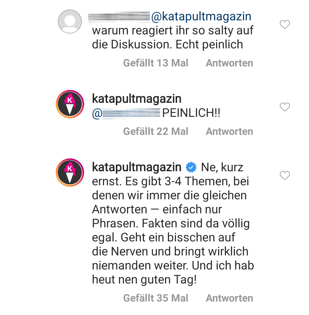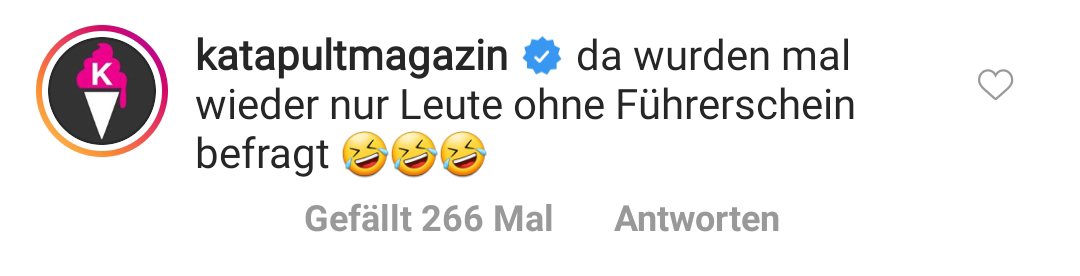 2. Schauen wir doch mal auf ein paar Kommentare, die uns erwarten könnten. Die lieferte das Katapult Magazin ja dankenswerter Weise gleich mit.