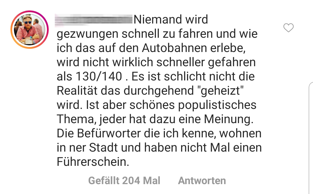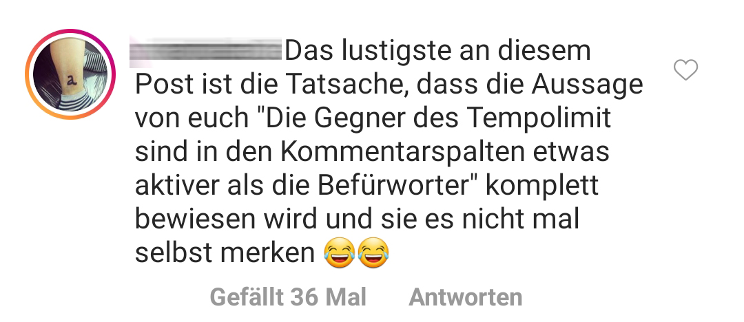 1. Bereits im Post schreibt der Nostradamus unter den Magazinen: „Die Gegner des Tempolimits sind in den Kommentarspalten etwas aktiver als die Befürworter.“ – joa, doch. Das kommt so in etwa hin.