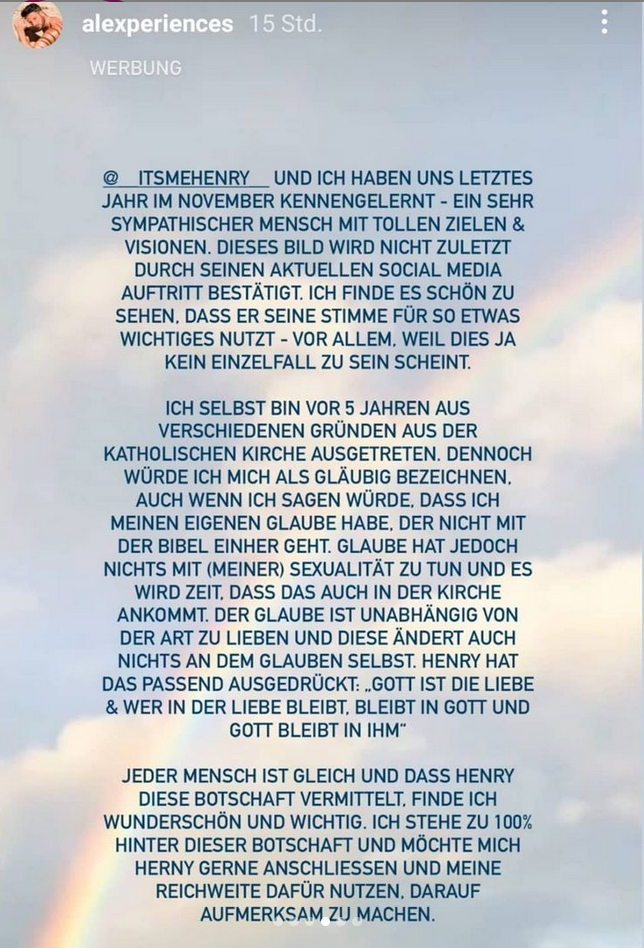 Wann hat die katholische Kirche eigentlich nochmal vor, im Jahr 2021 anzukommen? Vermutlich in 2121. Obwohl es durchaus Dinge gibt, die einen hoffnungsvoller stimmen – wie etwa dieses bemerkenswert offene Interview mit einem Priester – gehen dann wieder Meldungen durch die Medien, die einen ratlos machen. Henry Frömmichen wollte Priester werden, beendete dafür eine Beziehung, zog von zu Hase weg und begann die entsprechende Ausbildung. Dann traf er Prince Charming (homosexuelle Version vom Bachelor) Star Alexander Schäfer in München, machte mit ihm ein Selfie und flog aus dem Priesterseminar wieder raus.