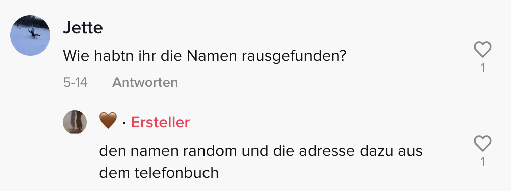 Da hatten die beiden allerdings mehr Glück – Sieglinde schreibt tatsächlich zurück.