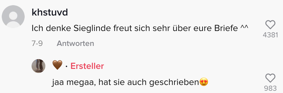 Und zwar nicht nur auf TikTok. Auch Sieglindes Freunde beneiden sie anscheinend etwas um diese besondere Freundschaft.