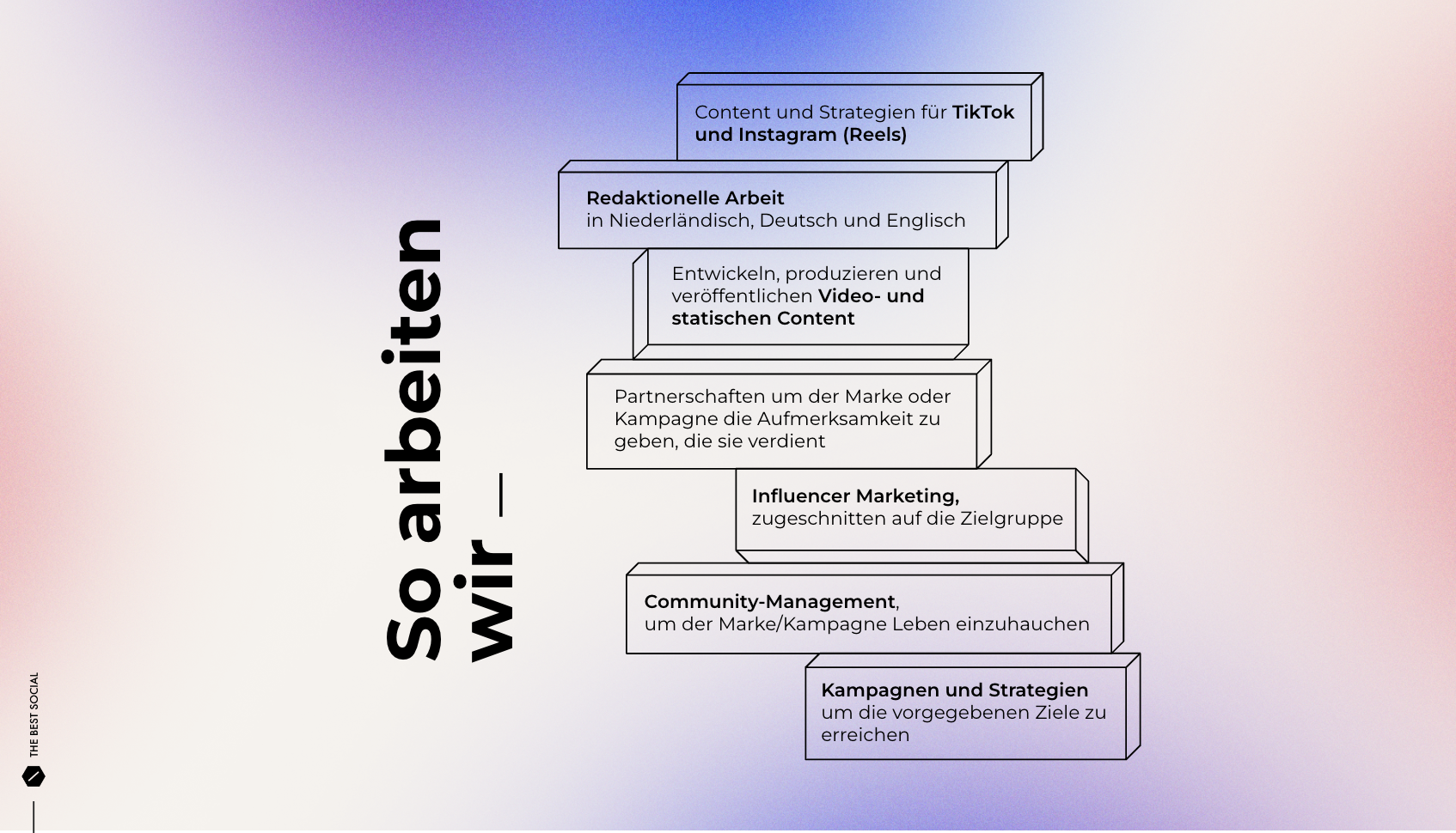 The Best Social Studio ist eine Full-Service-Agency. Wir kreieren, betreuen und inspirieren: Bei uns dreht sich alles um Socials. Wir arbeiten sowohl für eine Vielzahl von Brands als auch für unsere eigenen Unternehmensbereiche.