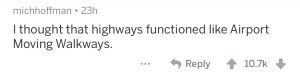 16. Autobahnen, die wie Rollbänder am Flughafen funktionieren. Würde sicherlich das Unfallrisiko minimieren.