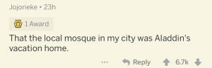 6. Aladdin und Yasmin in der lokalen Moschee wäre sicherlich der Renner.