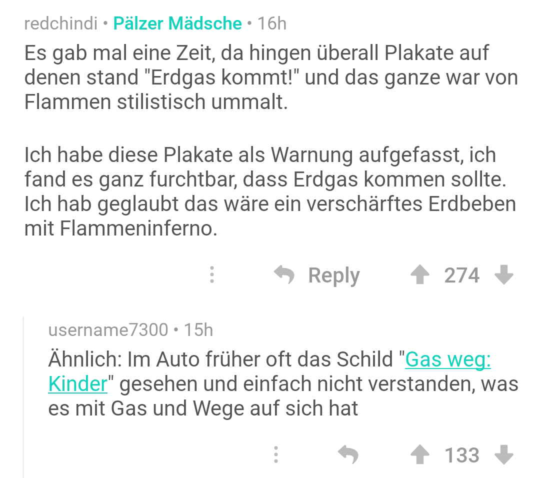 Und, was habt ihr so als Kinder falsch verstanden? Ich dachte ja immer, es würde Wuhes C heißen, statt Hohes C. Das Kind in der Werbung hat aber auch fürchterlich undeutlich geredet. Reddit-User historytoby hat mal bei der Community nachgefragt. Und da kamen mitunter großartige Antworten bei rum.