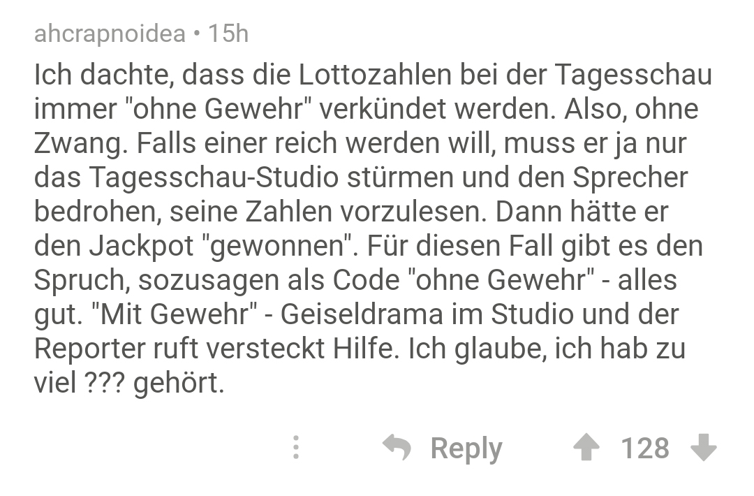 Und, was habt ihr so als Kinder falsch verstanden? Ich dachte ja immer, es würde Wuhes C heißen, statt Hohes C. Das Kind in der Werbung hat aber auch fürchterlich undeutlich geredet. Reddit-User historytoby hat mal bei der Community nachgefragt. Und da kamen mitunter großartige Antworten bei rum.
