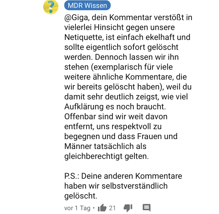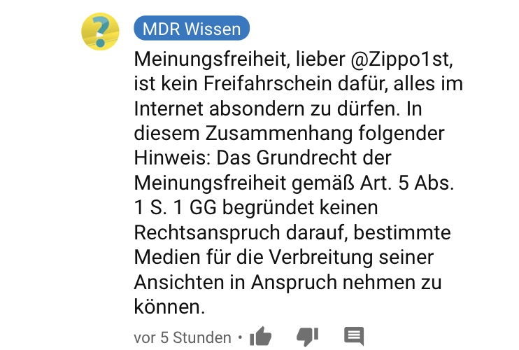 Auch in diesem Fall kontert MDR Wissen sachlich und ruhig.