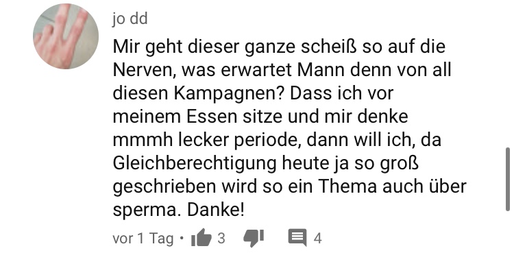 Dann stolpert man über ein Video und liest Kommentare wie „über mein Sperma redet niemand“ und merkt: Wir sind noch nicht fertig. Das Team von MDR reagiert gekonnt sachlich auf die (oftmals unpassenden) Kommentare und beeindruckt uns mit starkem Community Management.