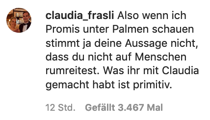 2. Aber Carina hat sich mit ihren Aktionen gegen Claudia gestern ebenfalls meilenweit ins Abseits manövriert.