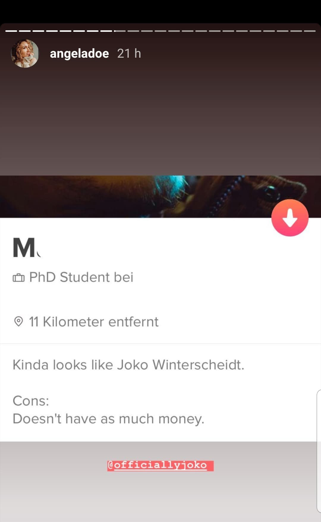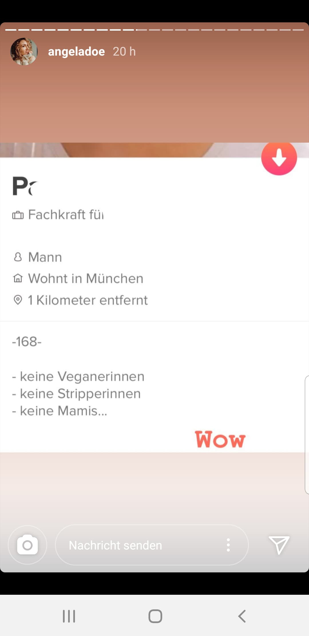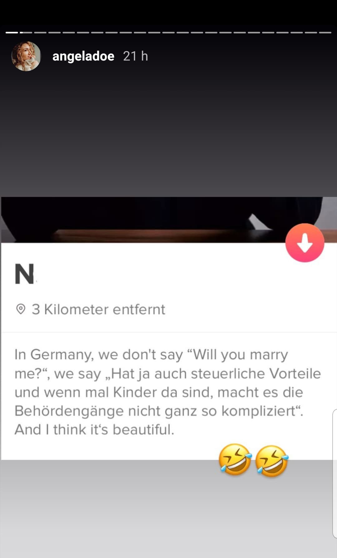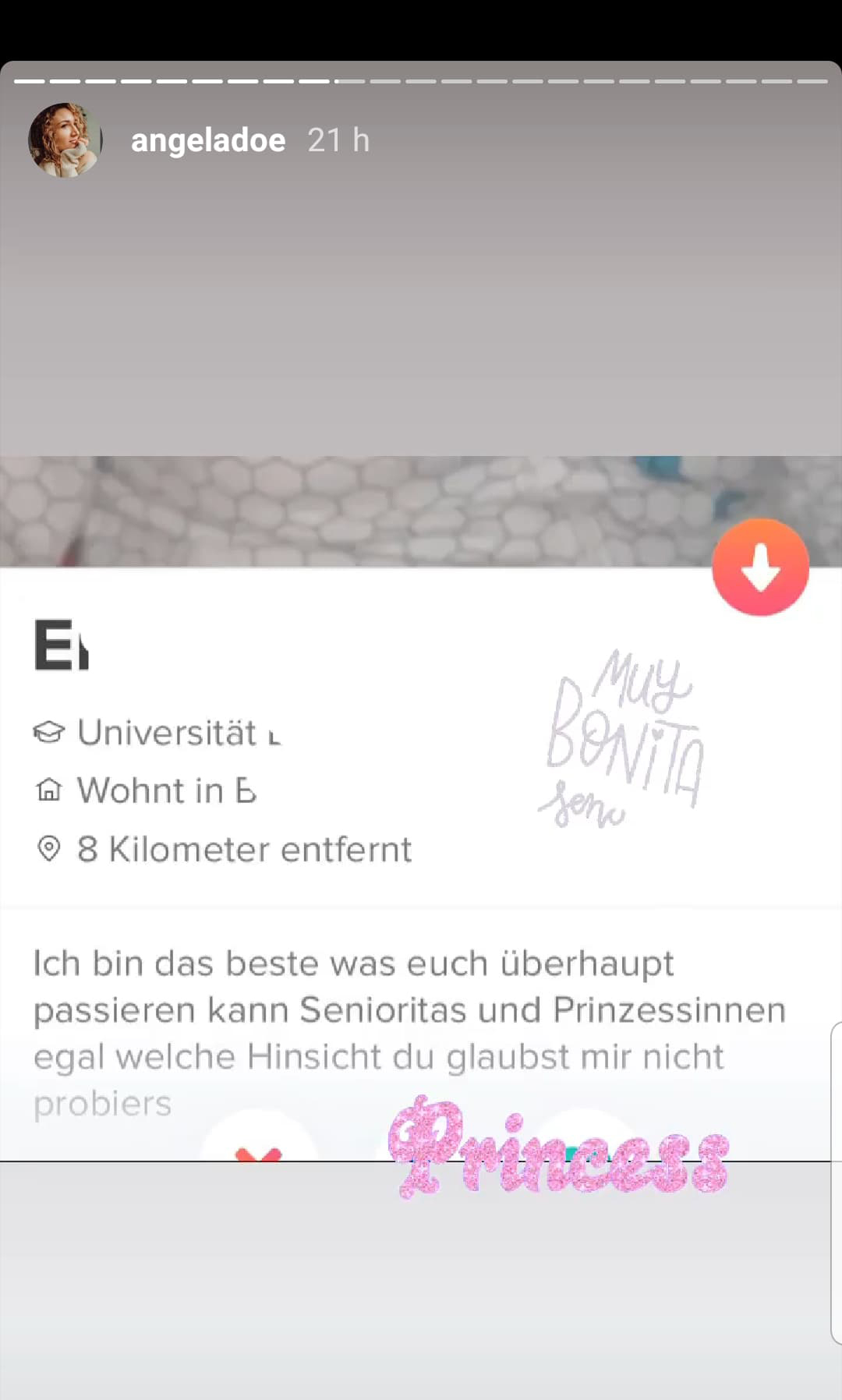 Tinder, Baby. Es ist wieder soweit. Bilder? Die sind doch sowas von oberflächlich. Da achtet doch heutzutage bei Tinder kaum noch jemand drauf. Nein, viel wichtiger ist die Biografie. Texte, die einem direkt aus der Seele sprechen. Texte so tief wie tausend Ozeane. So bezaubernd wie 100 David Copperfields. So inspirierend wie ein Blog bei The Best Social Media. Das sollte das Ziel sein. Mindestens! Das, oder die Penislänge. Die Münchnerin Angela Doe hat ihren Followern einen Einblick gegeben, auf welche Perlen sie dabei gestoßen ist.