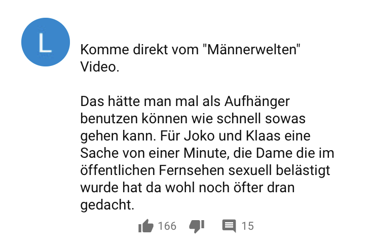 Twitter ist nicht die einige Plattform, die sich mit der Vergangenheit von Klaas beschäftigt. Einige Kommentare unter dem Video ..