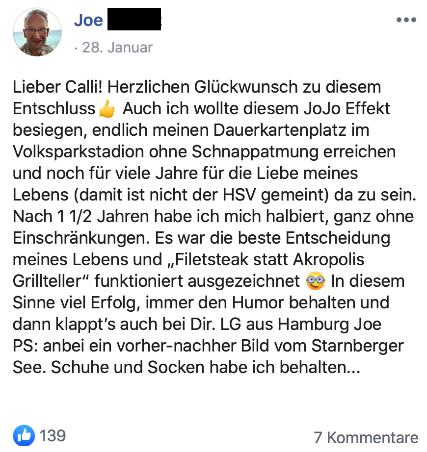 2. Daraufhin bedankt sich ein Fan bei „Calli“ für die Motivation, die ihm selbst beim Abnehmen geholfen hat: