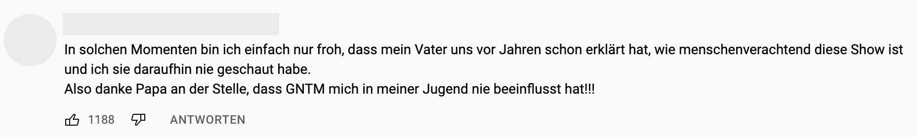 Es hat echt ein Video von @rezomusik gebraucht, damit Menschen checken, wie schlimm #gntm ist? C’mon, das darf nicht wahr sein. Wer in dem Video „Neues” entdeckt, muss dringend seine eigene Medienkompetenz in Frage stellen.