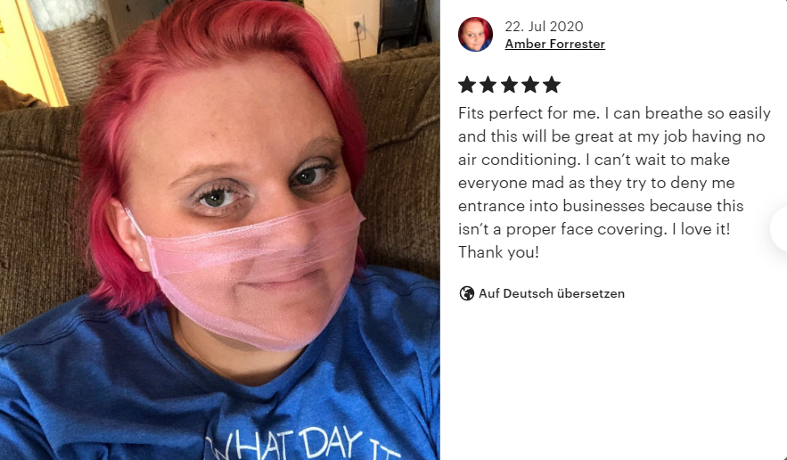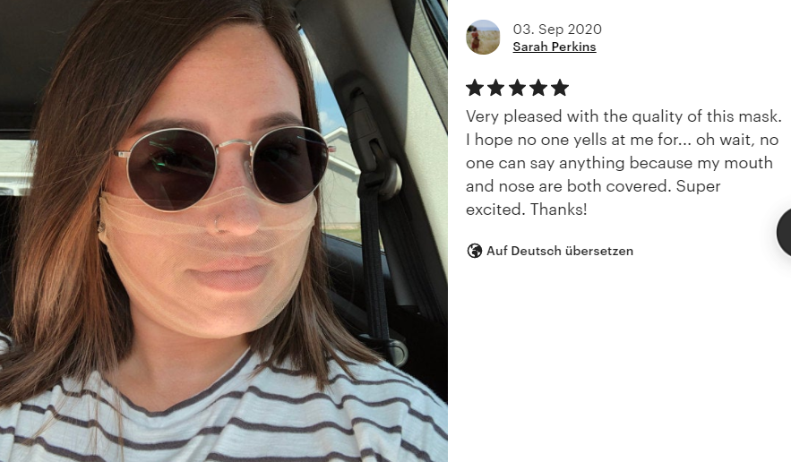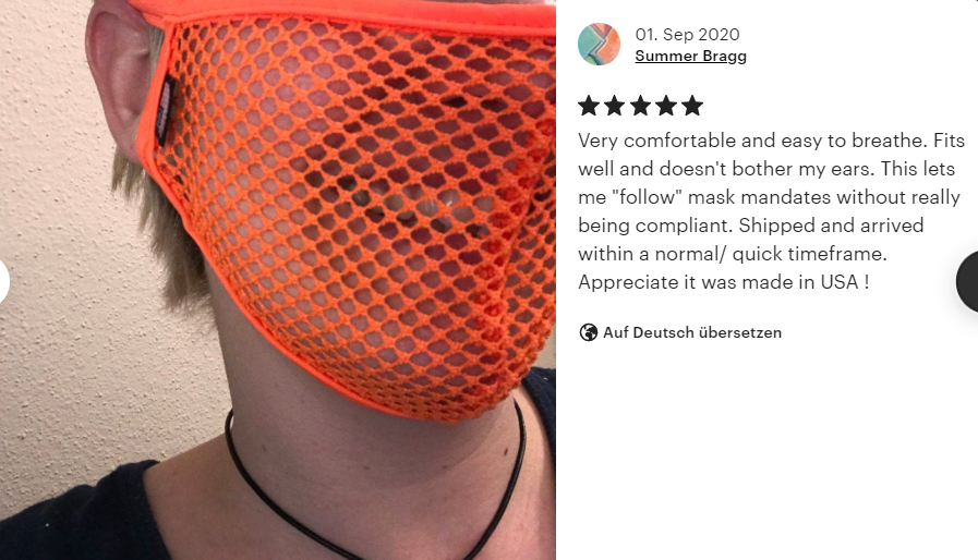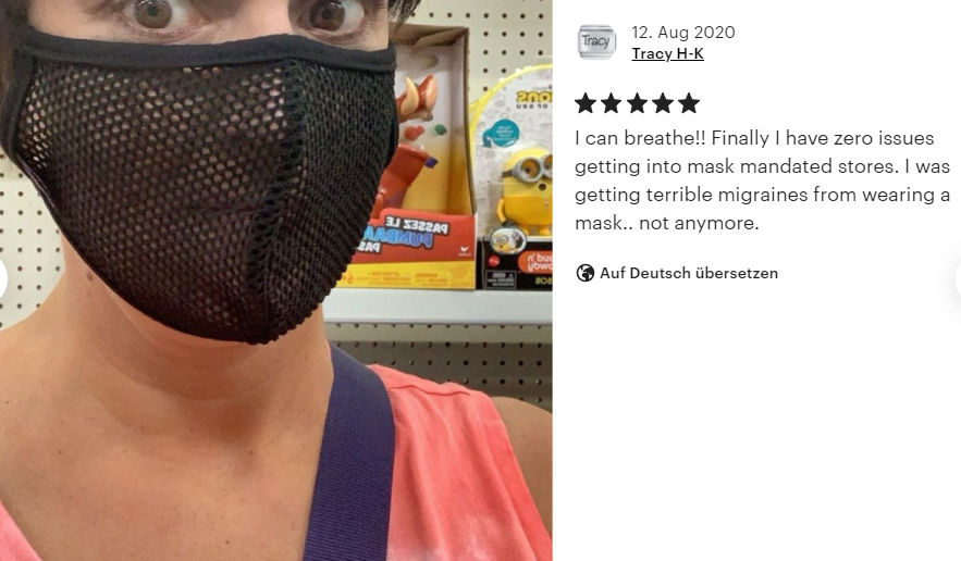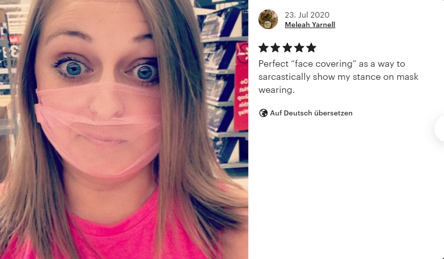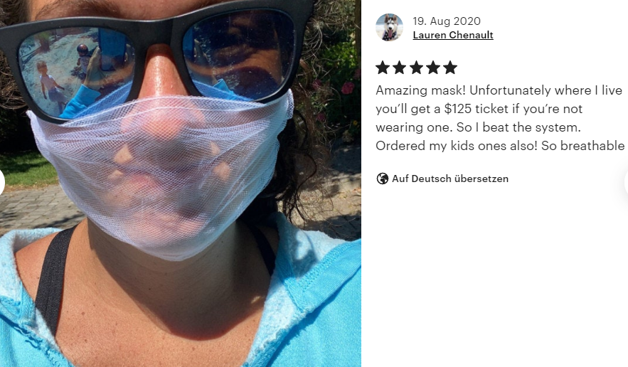 Masken verweigern ist sooooo August 2020. Der neue heiße Trend in den USA heißt nun atmungsaktive Masken. Also Masken mit Löchern. Damit das Atmen leichter fällt. Ist doch logisch. Zahlreiche User feiern diese Art „Masken“ auf dem Internetportal Etsy. Und posten natürlich die passenden Bilder dazu. Puuuh … ja. Menschen, ey.