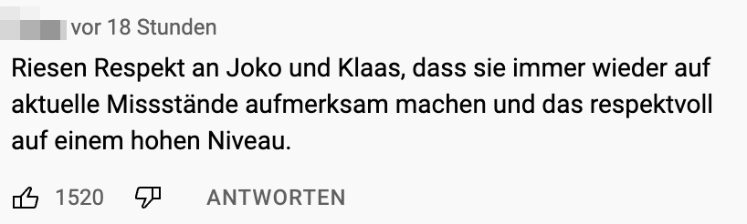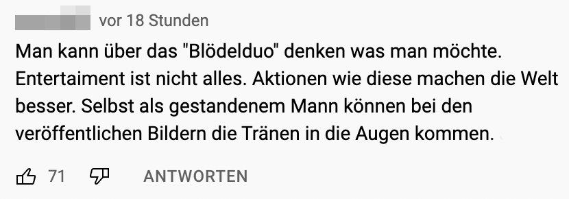 In den Youtube-Kommentaren findet sich viel Lob und Dankbarkeit: